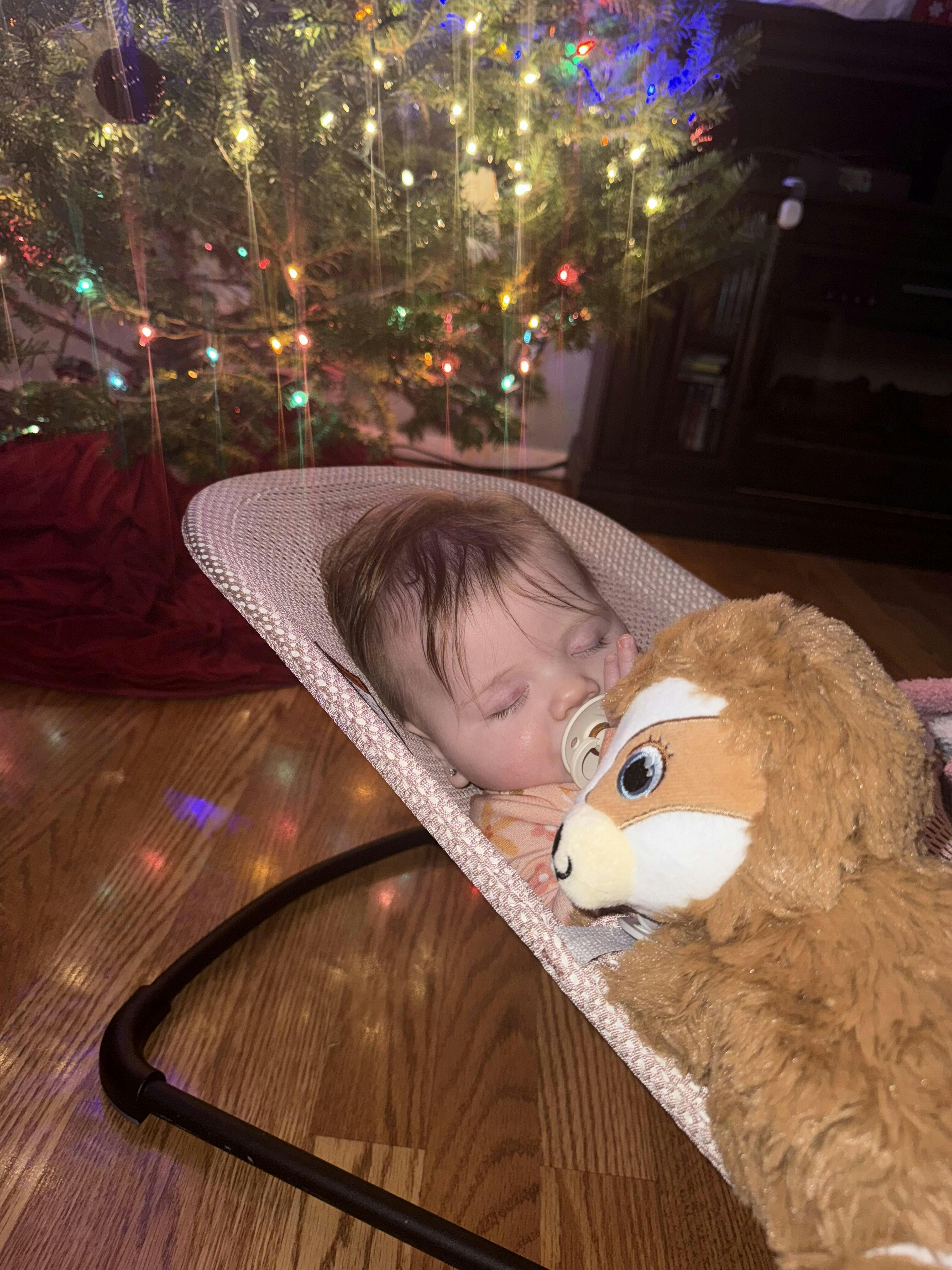 We love this portable sound machine that doubles as the cutest stuffie! The smart sensor that senses when baby is stirring and turns on is a total game changer!